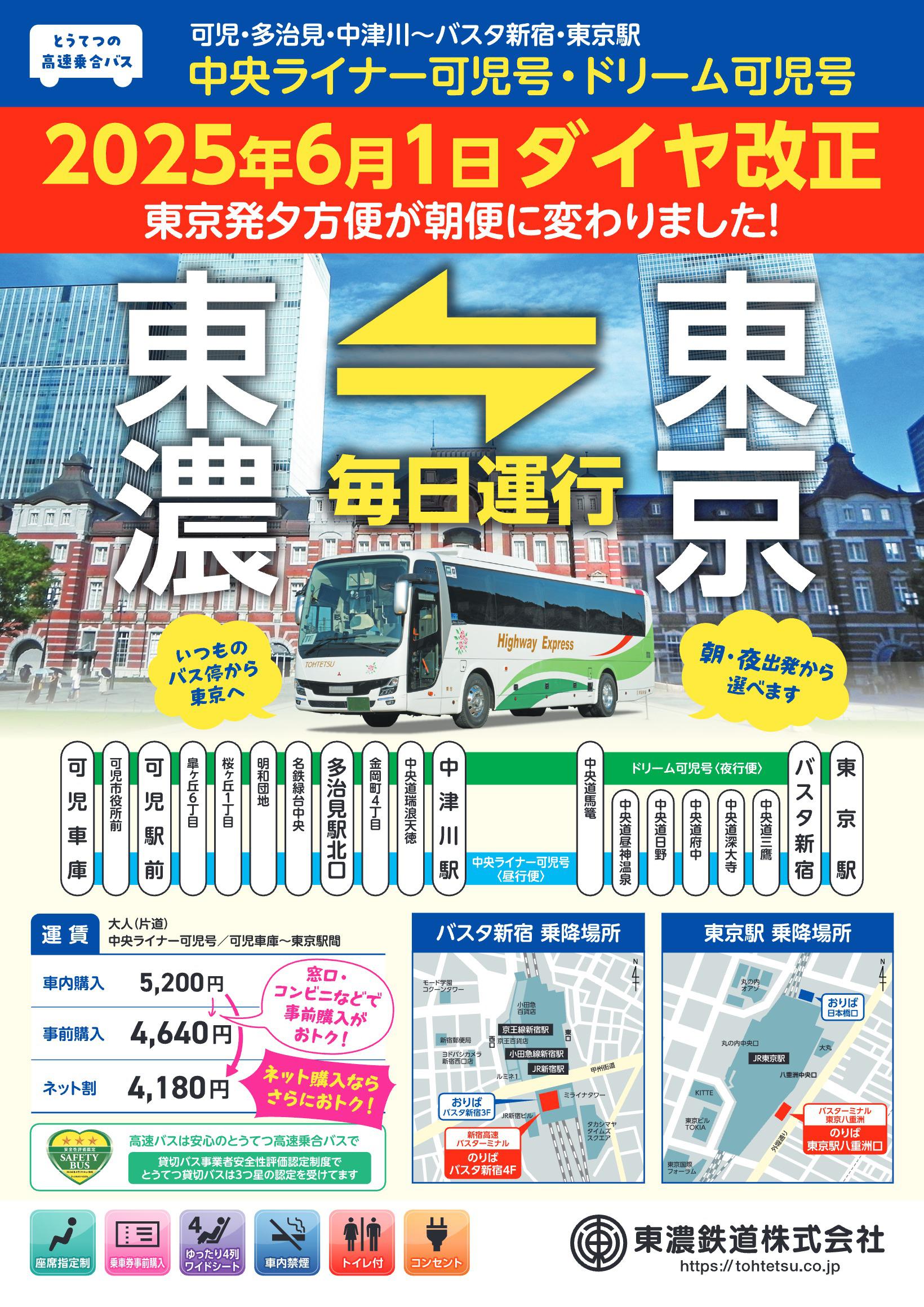 可児・多治見・中津川 ― バスタ新宿・東京駅