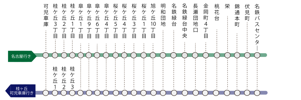 - 可児車庫・桂ヶ丘⇔金岡町4、栄⇔名鉄バスセンター各相互間のご利用は出来ません。
