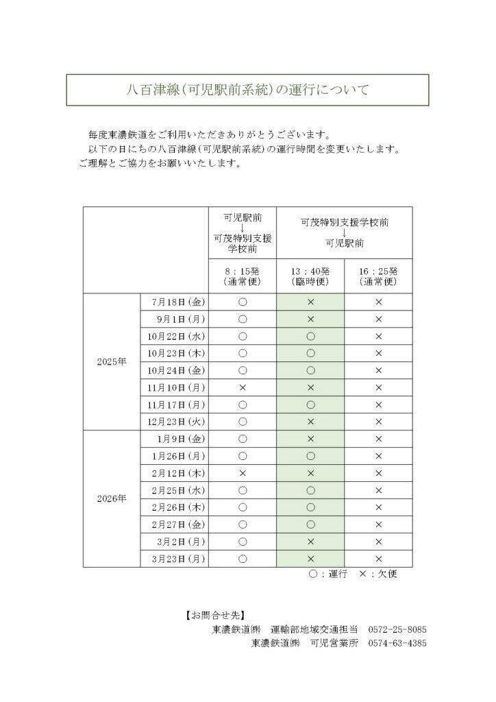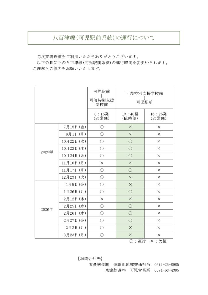 八百津線(可児駅前系統)の運行について