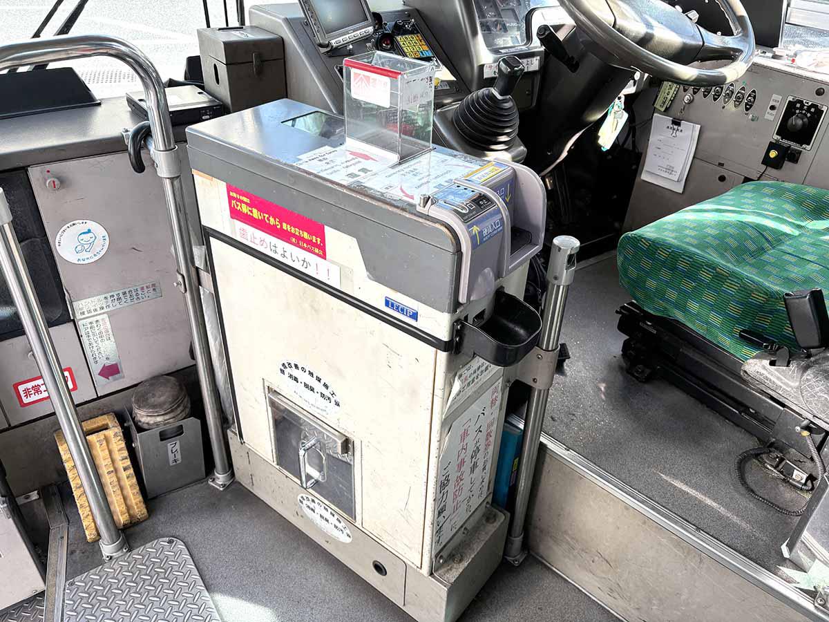 - 運転席横にある運賃箱はおつりが出ません。あらかじめバスが停車中に運賃箱にある両替機で両替をお願いいたします。硬貨及び千円札以外の両替はできませんのでご了承ください。