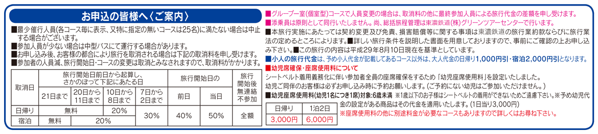 ◆日帰りコース 出発日の10日前までに