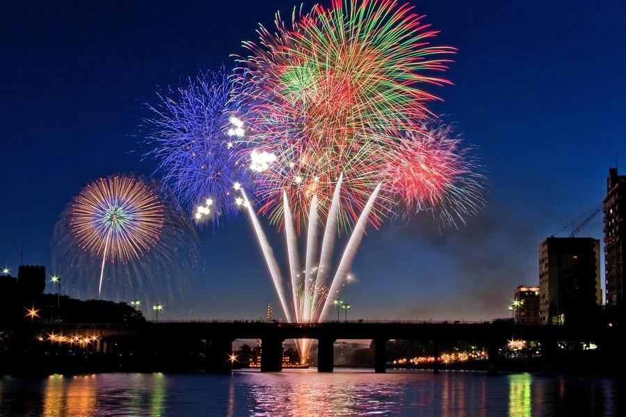 徳川家康公生誕の地「岡崎」が全国に誇る大花火大会です。江戸時代から情緒豊かな鉾船を浮かべた花火まつりとして広く知られていた菅生神社の祭礼が元となっており、岡崎の伝統産業「三河花火」の継承と支援を目的に開催されています。